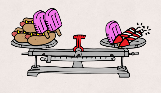 If the scales below are evenly balanced, how many fireworks must you use to replace the question mark in order to keep the scale on the right even?